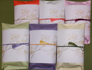 紫式部ゆかりの越前和紙の揉み紙を用いた綾袋にお勧めの品を詰合せました