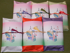 紫式部ゆかりの越前和紙の揉み紙を用いた綾袋にお勧めの品を詰合せました